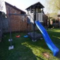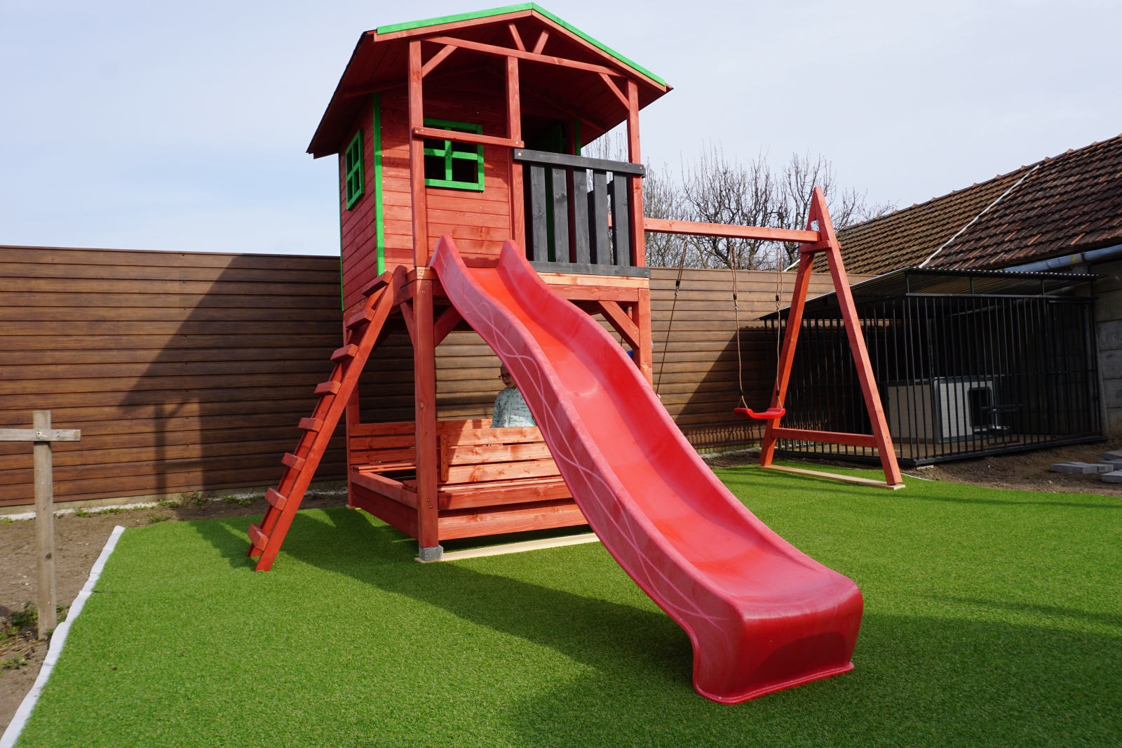Játszótér házikóval.Tartós masszív szerkezet. Anyaga: időjárás álló nemes jegenyefenyő. Felületkezelés: 2 x vékonylazúr .